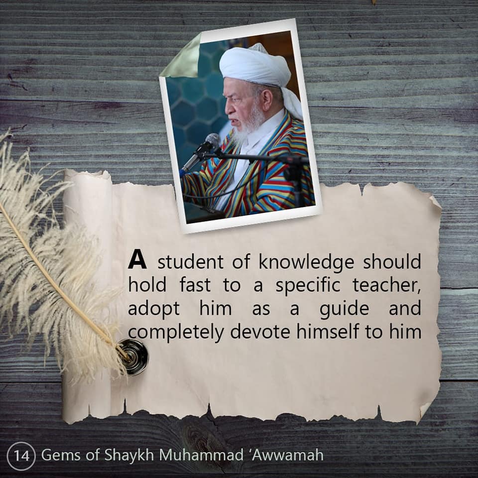A student of knowledge should hold fast to a specific teacher, adopt him as a guide and completely devote himself to him.