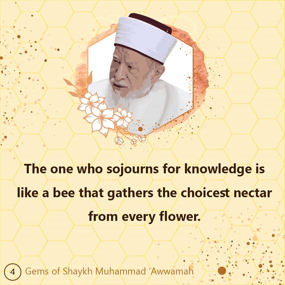The one who sojourns for knowledge is like a bee that gathers the choicest nectar from every flower.Shaykh Muhammad Awwamah