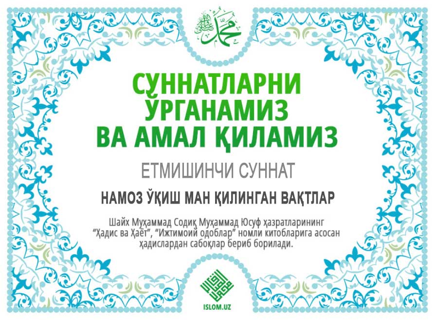 Ибн Умар розияллоҳу анҳудан ривоят қилинади.Набий соллаллоҳу алайҳи васаллам.Намозингиз ила қуёшнинг чиқишини ҳам, ботишини ҳам намоз вақти қилиб олманглар. давоми...