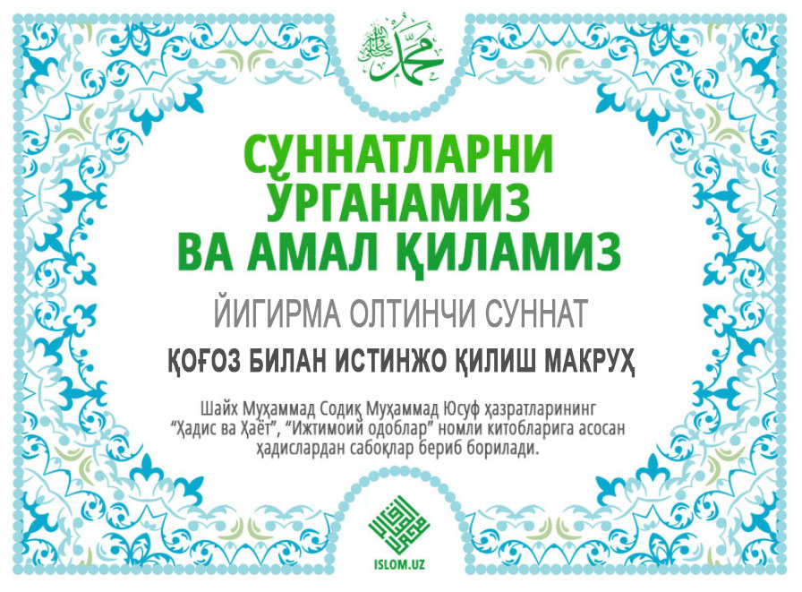Пайғамбаримизга мукаммал ва батамом салавоту дурудлар бўлсин.