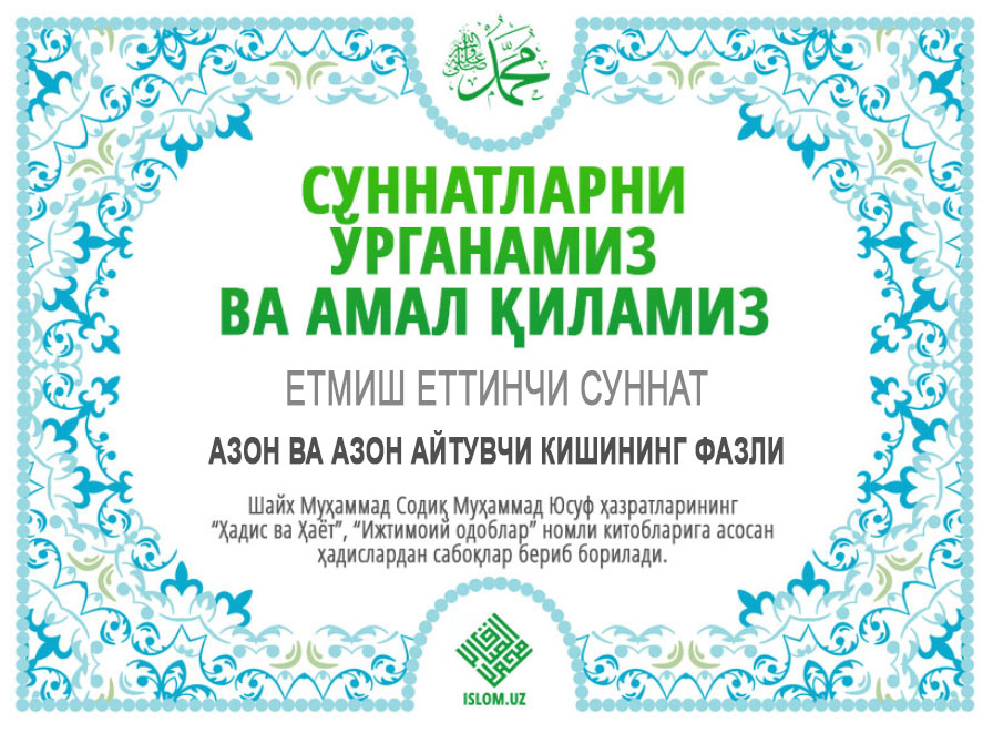 Пайғамбаримизга мукаммал ва батамом салавоту дурудлар бўлсин.