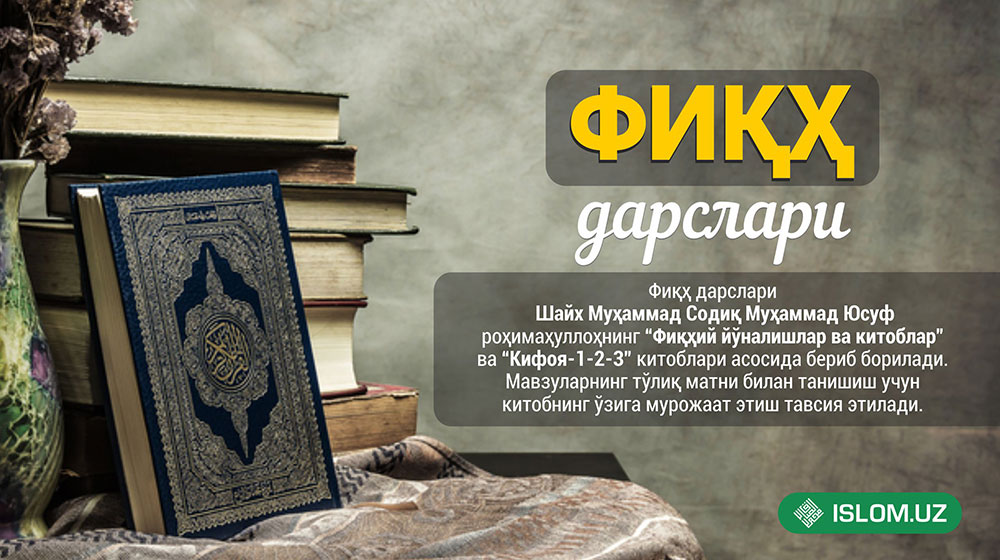 Фиқҳ дарслари Шайх Муҳаммад Содиқ Муҳаммад Юсуф роҳимаҳуллоҳнинг Фиқҳий йўналишлар ва китобларrdquo ва Кифоя123rdquo китоблари асосида бериб борилади. Мавзуларнинг давоми...