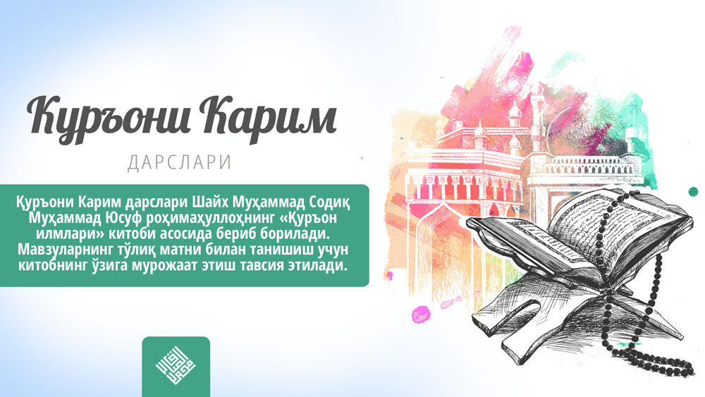 Қуръони Карим дарслари Шайх Муҳаммад Содиқ Муҳаммад Юсуф роҳимаҳуллоҳнинг .Қуръон илмлари, китоби асосида бериб борилади. Мавзуларнинг тўлиқ матни билан танишиш учун китобнинг ўзига мурожаат этиш тавсия этилади.