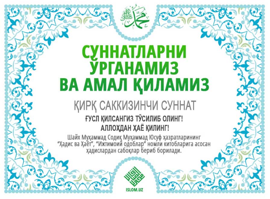 . .Яъло розияллоҳу анҳудан ривоят қилинади.Расулуллоҳ соллаллоҳу алайҳи васаллам очиқ жойда изорсиз ғусл қилаётган одамни кўриб қолдилар. давоми...