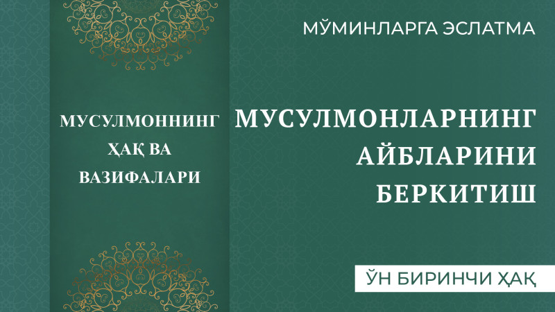 Исломда мусулмонларнинг камчиликларини яшириш улуғ фазилатли амал ҳисобланади. Пайғамбаримиз соллаллоҳу алайҳи васаллам Эй тили билан иймон келтириб, иймон давоми...