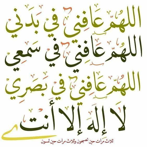 اللهُمَّ عَافِنِي فِي بَدَنِي اللهُمَّ عَافِنِي فِي سَمْعِي اللهُمَّ عَافِنِي فِي بَصَرِي، اللهُمَّ إِنِّي أَعُوذُ بِكَ مِنَ الكُفْرِ وَالفَقْرِ اللهُمَّ إِنِّي أَعُوذُ بِكَ مِنْ عَذَابِ القَبْرِ لاَ إِلَهَ إِلاَّ أَنْتَ