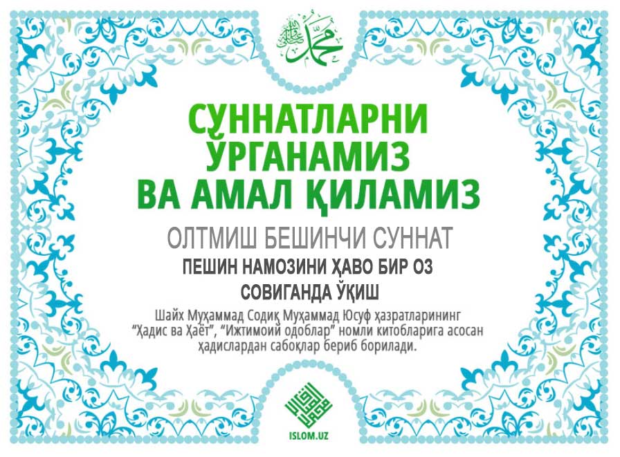 Пайғамбаримизга мукаммал ва батамом салавоту дурудлар бўлсин.
