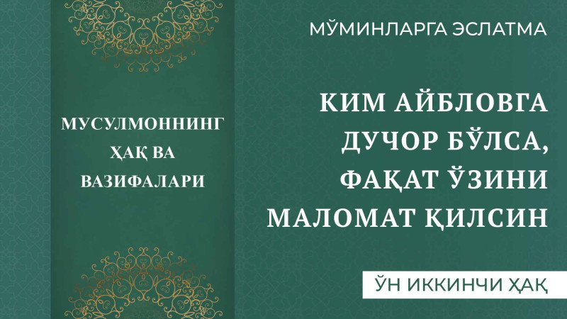 Пайғамбаримизга мукаммал ва батамом салавоту дурудлар бўлсин.
