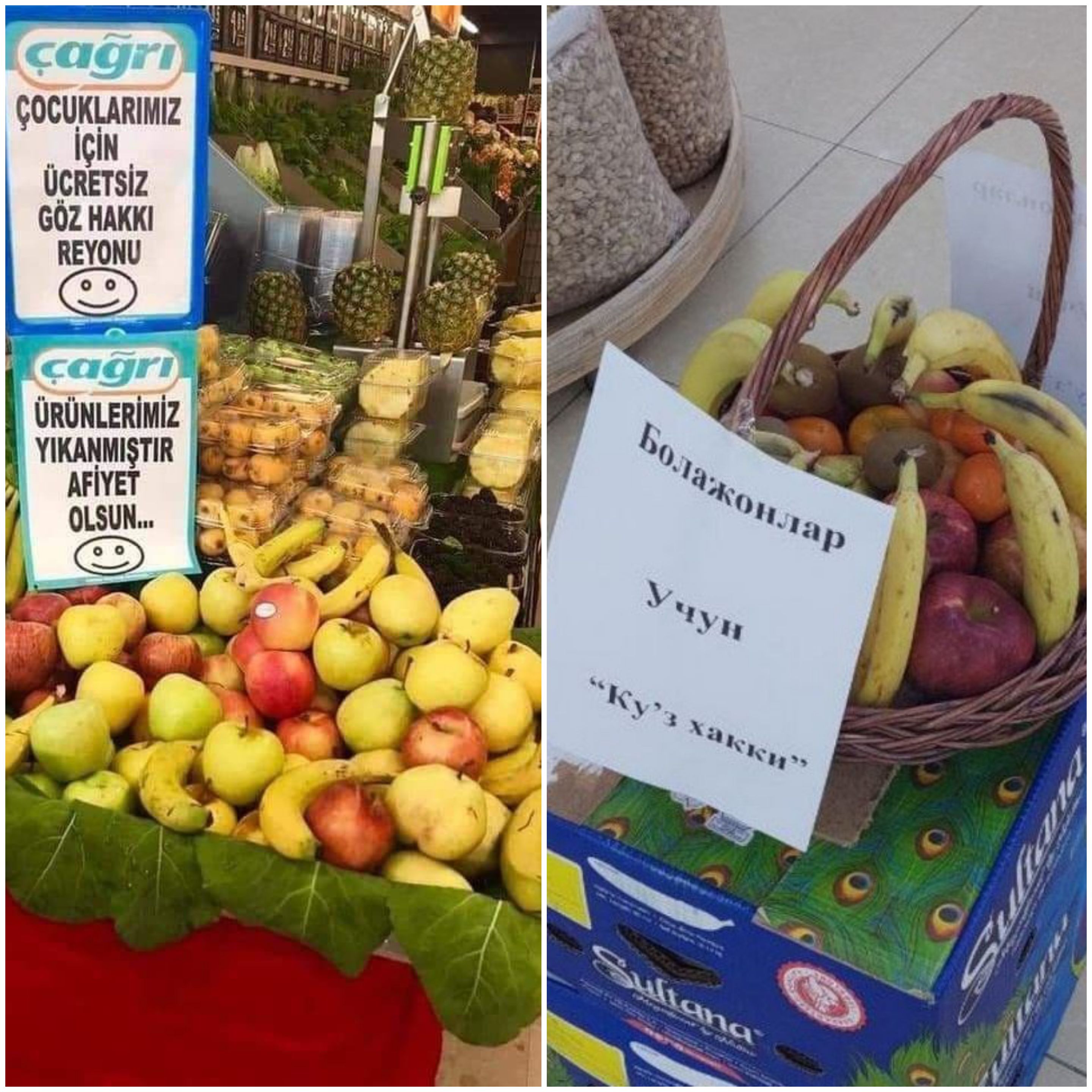 Яқинда ижтимоий тармоқларда бир сурат кенг тарқалди. Унда: «Туркия дўконларида «Кўз ҳаққи» деб номланган бепул мевалар тахланган расталар! Мевага кўзи тушиб егиси келган болажонлар учун қилинган. Бизда ҳам иложи бормикан?» дея изоҳ қолдирилган.
