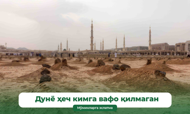 Бошқаларнинг хонадонидан эшитилган ўлим хабари энди сенинг хонадонингдан тарқалади. Бошқалар учун ўқилган дуои фотиҳалар энди сен учун ўқилади.