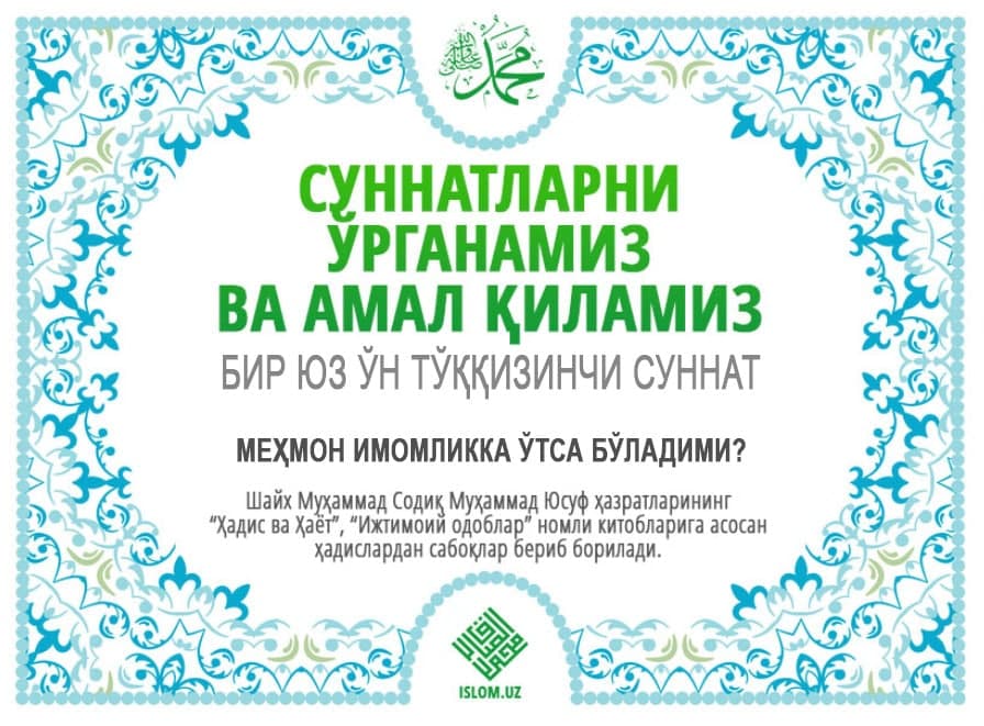 «Сизлардан бирортангиз ўтсин, мен нима учун ўтмаслигимни айтиб бераман. Расулуллоҳ соллаллоҳу алайҳи васалламнинг «Ким бир қавмни зиёрат қилса, уларга имом бўлмасин, улардан бири имом бўлсин», деганларини эшитганман», деди».