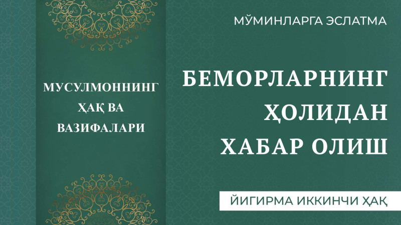 Пайғамбаримизга мукаммал ва батамом салавоту дурудлар бўлсин.