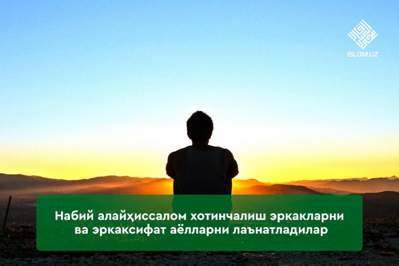 «Набий соллаллоҳу алайҳи васаллам хотинчалиш эркакларни ва эркаксифат аёлларни лаънатладилар ҳамда: «Уларни уйларингиздан ҳайдаб чиқаринглар», дедилар. Сўнг Набий соллаллоҳу алайҳи васаллам фалончини ҳайдаб чиқардилар, Умар фалончини ҳайдаб чиқарди».