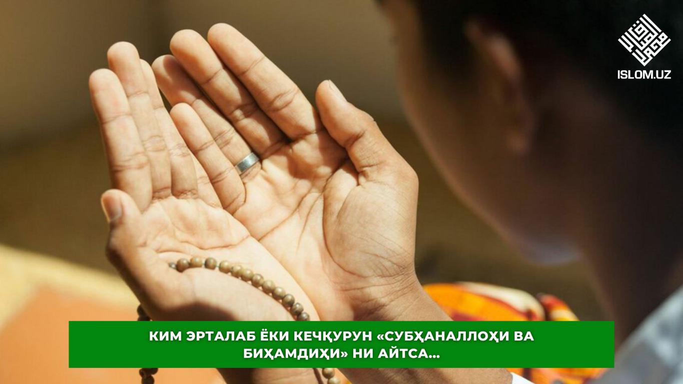 «Асбаҳна ва асбаҳал мулку лиллаҳи роббил ъаламийн. Аллоҳумма ас`алука хойра ҳазал йавми фатҳаҳу ва насроҳу ва нуроҳу ва барокатаҳу ва ҳудаҳу ва аъузу бика мин шарри ма фийҳи ва шарри ма баъдаҳ», деб айтсин. Сўнгра кеч кирганида ҳам худди шундай десин», дедилар.