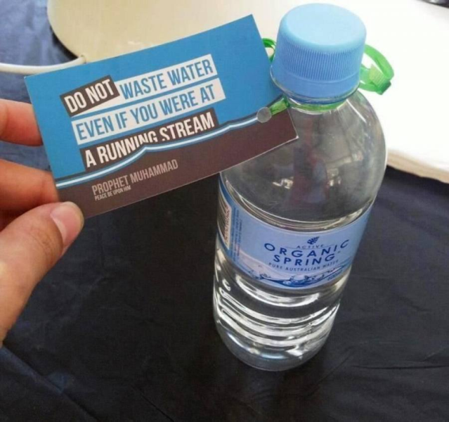 Австралияда қадоқланадиган ушбу маҳсулот этикеткасига “Оқиб турган дарё бўйида бўлсанг ҳам, сувни исроф қилма!” деб ёзилиб, остига “Муҳаммад соллаллоҳу алайҳи васаллам” деб ёзиб қўйилган.
