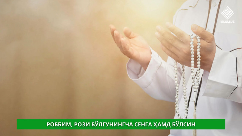 «Эй раббим, касби корим мени машғул қилиб қўйди. Менга бир нарса ўргатгинки ана шу ҳамма ҳамд ва тасбиҳларни ўз ичига олсин», дедилар. Шунда Аллоҳ таоло у зотга ваҳий қилиб: «Эй Одам қачон тонг оттирсанг уч марта ва кеч киргизсанг уч марта «Алҳамду лиллаҳи роббил ъаламийна ҳамдан йувафий ниъамаҳу ва йукафиъу мазийдаҳу» деб айт, мана шу ҳамд ва тасбиҳларни ҳаммасини ўз ичига олгандир», деб айтди.