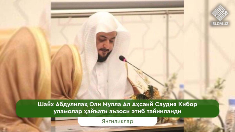 Ҳанафий уламоларидан бўлган шайх Абдулилаҳ Оли Мулла Ал Аҳсаий ҳазратлари Саудия подшоси фармони билан Саудия Кибор уламолар ҳайъати аъзоси этиб тайинланди.