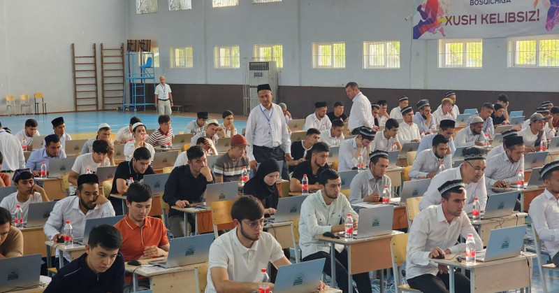Мазкур жараёнда Дин ишлари бўйича қўмита ва Ўзбекистон мусулмонлари идораси масъул раҳбарлари, диний таълим муассасалари мутасаддилари, имтиҳон олувчи педагог-ўқитувчилар, абитуриентлар иштирок этмоқда.