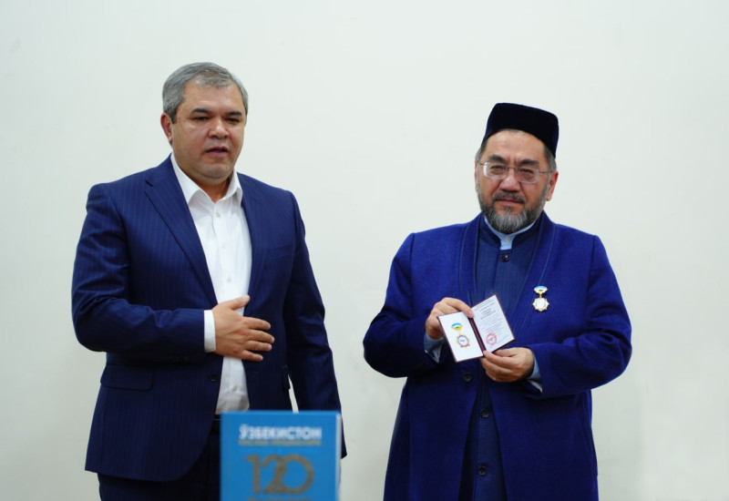 Бугун, 12 ноябрь куни Ўзбекистон мусулмонлари идораси раиси, муфтий Шайх Нуриддин Холиқназар ҳазратлари “Ўзбекистон касаба уюшмаларининг 120 йиллиги” эсдалик кўкрак нишони билан тақдирландилар. Диний идорада бўлиб ўтган тадбирда нишонни Тадбиркорлик, бизнес ва хизмат кўрсатиш соҳалари ходимлари касаба уюшмаси Республика кенгаши раиси Улуғбек Муҳамедов топширди.