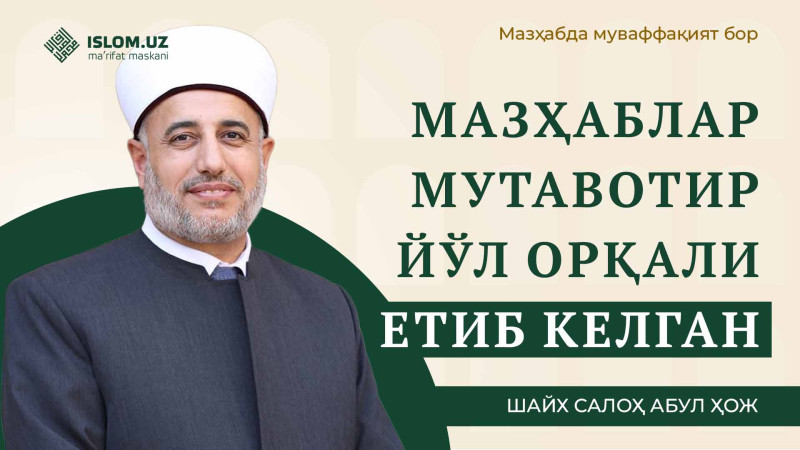 Яна бир ҳақиқат шуки, бу мазҳаблар мутавотир тарзда етиб келган, яъни салаф уламоларимизнинг сўзлари бизга мутавотир йўл билан етиб келмоқда. Ҳанафий мазҳаби китобларини ўқисангиз, сизга Абу Ҳанифанинг ўзи гапираётгандек бўлади. Бу сўзларни Абу Ҳанифа ўз оғзи билан айтганига ишончимиз комил, чунки улар бизга мутавотир йўл орқали етиб келган. Шофеъий мазҳабида ҳам шу ҳолат. Ҳар бир масалани дақиқ ўрганишади, қавллари мустафиз йўллар, яъни кўп санадлар билан етиб келади.