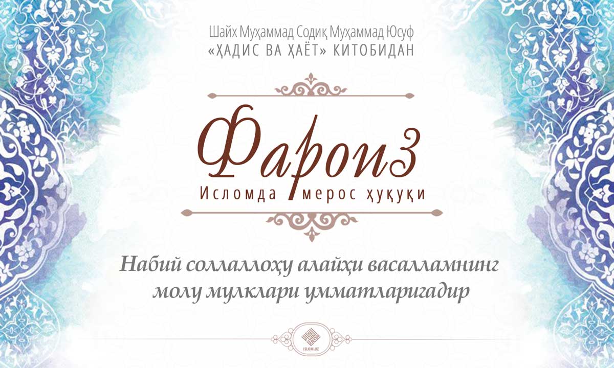 . .Амр ибн Ҳорис розияллоҳу анҳудан ривоят қилинади.Росулуллоҳ соллаллоҳу алайҳи васаллам вафот этган вақтларида дирҳам ҳам, динор ҳам, қул ҳам, давоми...