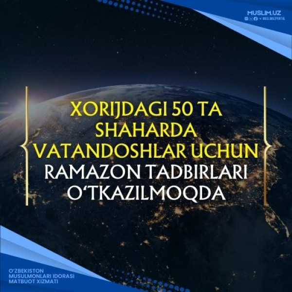 Муборак Рамазон ойида муҳтарам Президентимиз ташаббуси билан хорижда яшаётган ватандошлар учун кенг кўламли ифторлик ва маърифий тадбирлар ташкил этилмоқда. Жорий йилда ушбу эзгу ташаббус доирасида 50 шаҳарни қамраб олиниб, хорижда меҳнат қилаётган, таълим олаётган ва доимий яшаб келаётган юртдошларимизни бирлаштирмоқда.