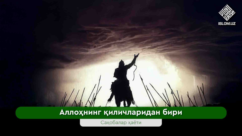 Биз шундоқ ҳолда турганимизда силоҳнинг шитирлаганни эшитиб қолдик. Бас у зот: «Бу ким!?» дедилар.