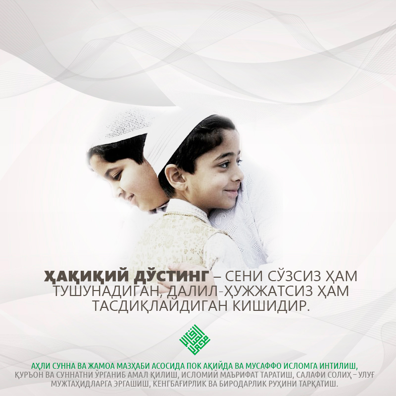Бисмиллаҳир Роҳманир Роҳийм. Аллоҳ таолога битмас-туганмас ҳамду санолар бўлсин. Пайғамбаримизга мукаммал ва батамом салавоту дурудлар бўлсин.