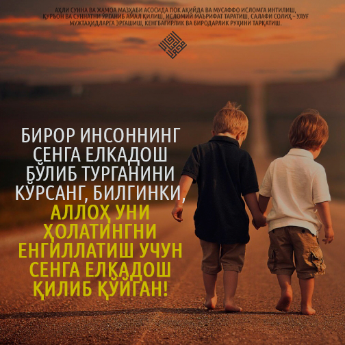 Қачонки инсонга зарар етса, ёнбошлаган, ўтирган ёки турган ҳолида Бизга дуо қиладир. Ундан зарарини кетказсак, худди ўзига етган зарар ҳақида Бизга дуо қилмагандек, кетаверадир. Ҳаддидан ошганларга қилаётган амаллари ана шундай чиройли кўрсатилди. (Юнус сураси, 12-оят)