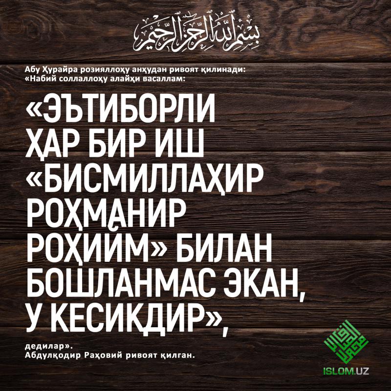 Пайғамбаримизга мукаммал ва батамом салавоту дурудлар бўлсин.