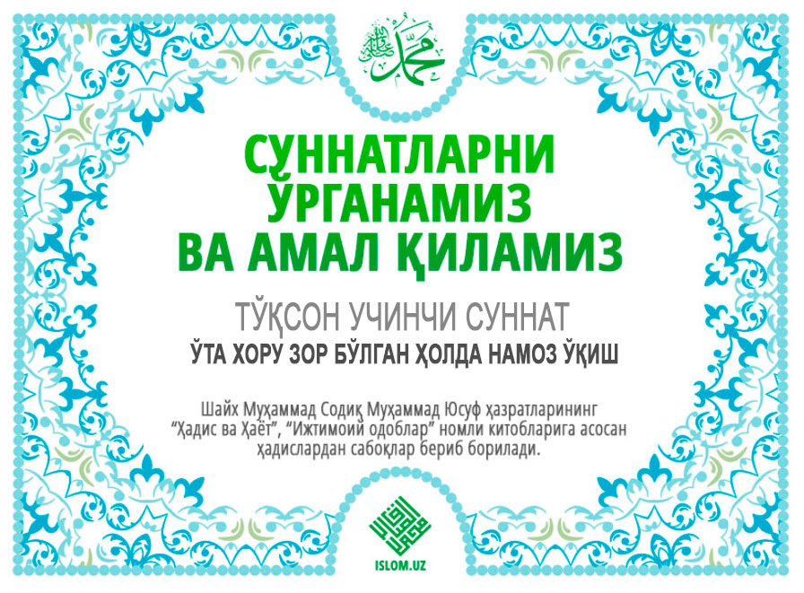 Пайғамбаримизга мукаммал ва батамом салавоту дурудлар бўлсин.