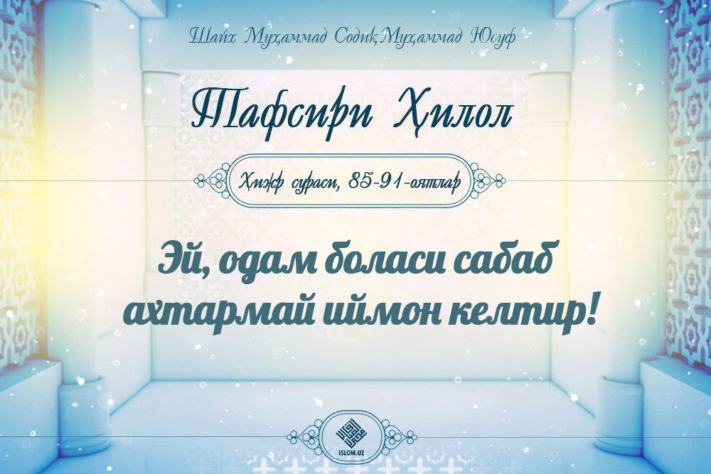 “Бас, улардан юз ўгир ва Аллоҳга таваккул қил. Вакилликка Аллоҳнинг Ўзи кифоя қилур” (Нисо сураси, 81-оят).