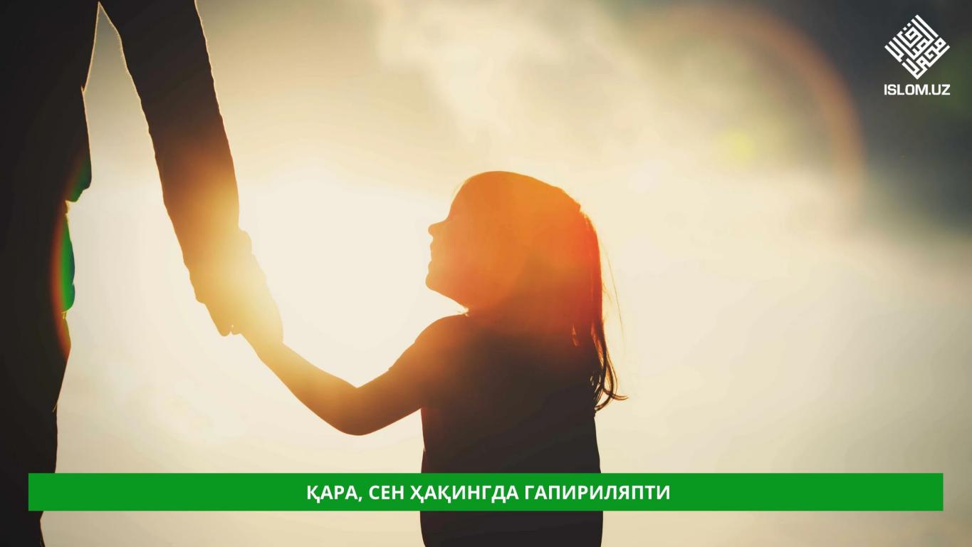 Аллоҳ таоло Пайғамбари соллаллоҳу алайҳи васалламга .Гапир, деди. Қара, у зот нима дедилар.Икки қизни тарбиялаган киши қиёмат куни мен билан бармоқларини давоми...