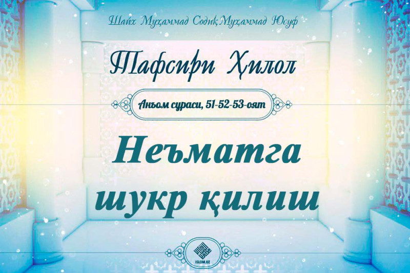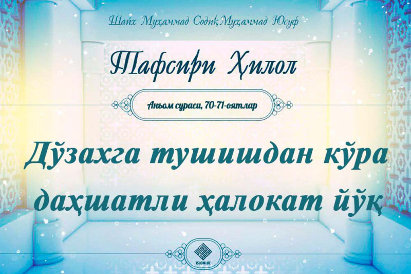 .У Қуръон билан Роббларига тўпланишларидан қўрқадиганларни огоҳлантир. Уларга Ундан ўзга валий ҳам, шафоатчи ҳам йўқ. Шоядки, тақво қилсалар, Анъом давоми...