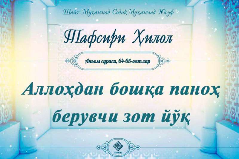 .Сизни улардан ва барча ғамаламлардан Аллоҳ қутқарур. Сўнгра эса сиз ширк келтирасиз,, ndash деб айт, Анъом сураси, 64оят. Аллоҳдан бошқа қутқарадиган ҳеч қандай давоми...