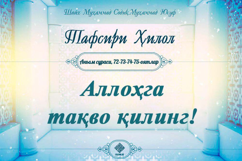 .Намозни қоим қилинг ва Аллоҳга тақво қилинг У сизлар ҳузурига тўпланадиган Зотдир, Анъом сураси, 72оят. Агар Аллоҳнинг ҳидоятини ҳақиқий равишда тутган давоми...