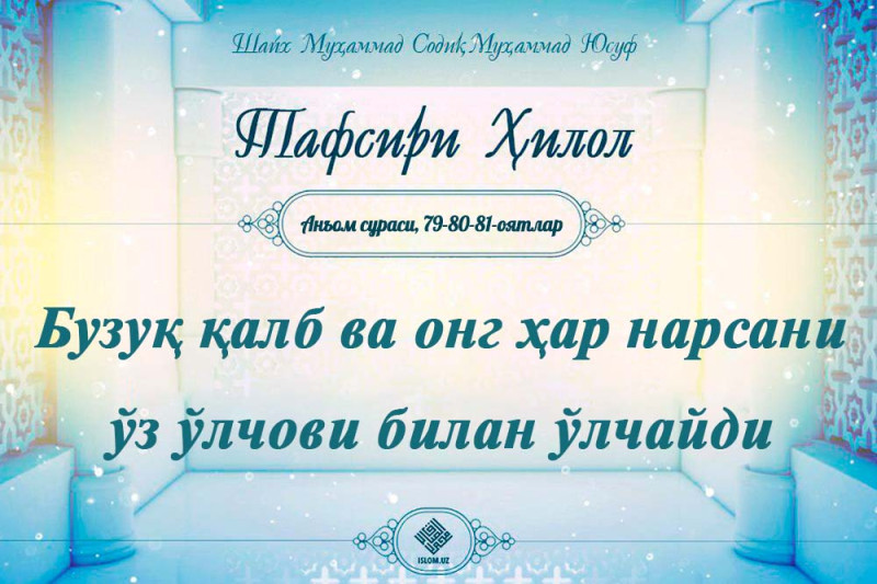 .Албатта, мен юзимни ҳаниф бўлган ҳолимда осмонлару ерни йўқдан бор қилган Зотга юзлантирдим ва мен мушриклардан эмасман, Анъом сураси, 79оят. Бу иқрор давоми...