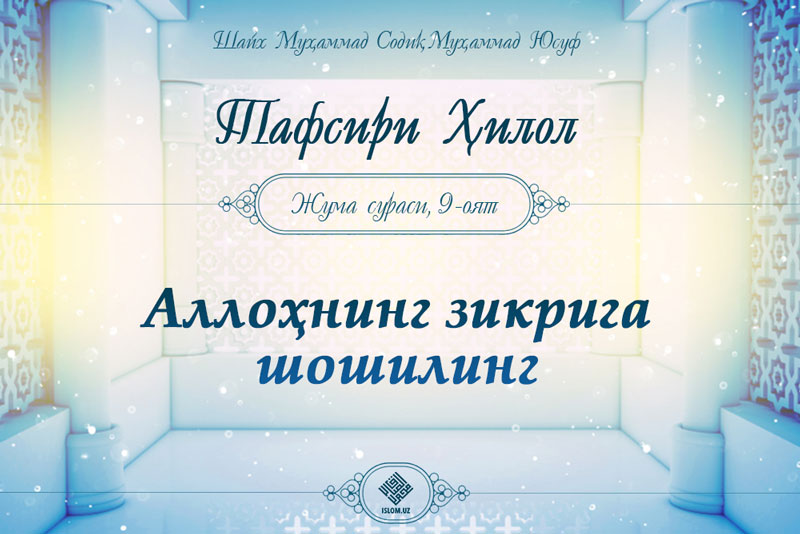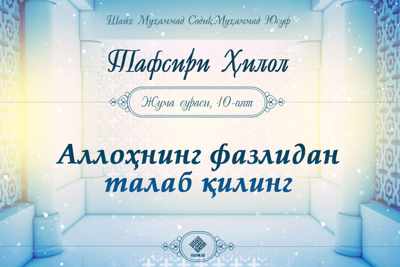 Аллоҳ таоло Жума сурасида шундай марҳамат қилади .Бас, намоз тугаганидан сўнг ер юзи бўйлаб тарқалинг ва Аллоҳнинг фазлидан талаб қилинг ҳамда Аллоҳни кўп давоми...