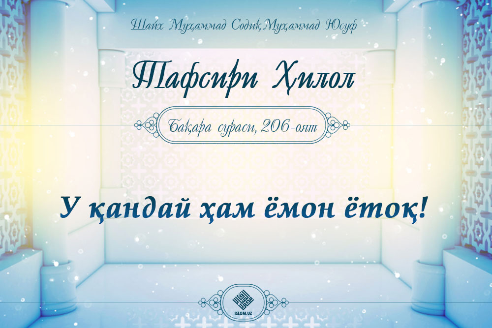 Аллоҳ таоло Бақара сурасида шундай марҳамат қилади .Қачон унга .Аллоҳдан қўрққин,, ndash дейилса, кибру ҳавоси уни гуноҳга етаклар. Жаҳаннам унга етарлидир. У давоми...