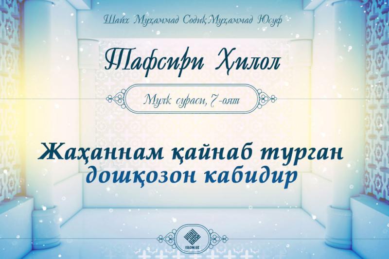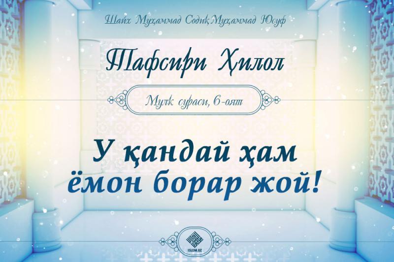 Аллоҳ таоло Мулк сурасида шундай марҳамат қилади .Ўз Роббларига куфр келтирганлар учун жаҳаннам азоби бордир ва у қандай ҳам ёмон борар жой, 6оят.Демак, давоми...