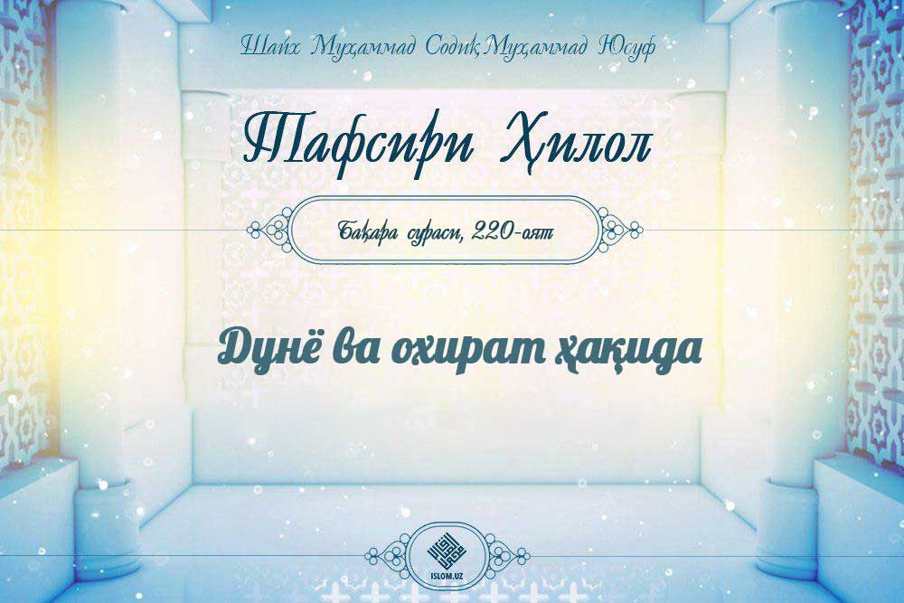 Ушбу оятлар синчиклаб ўқибўрганилса, Исломнинг поклик дини, поклик бўлганда ҳам, мукаммал поклик дини экани яққол намоён бўлади. Аввалги беш оятда пок давоми...