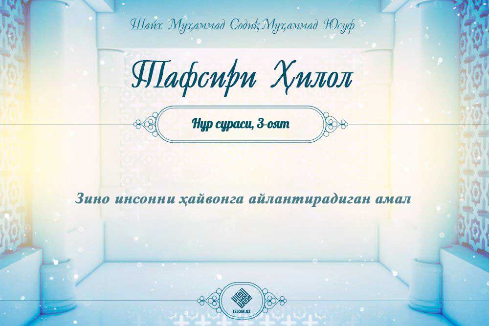 Шаръий никоҳдан холи бўлган ҳолда жинсий яқинлик қилиш зинодир. Зино ndash шариатимизда катта гуноҳ ва ҳаром ишдир. У ким билан бўлишидан қатъий назар жирканч иш давоми...