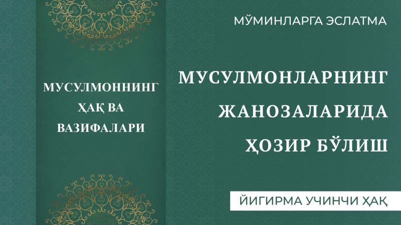 Мусулмонларнинг жанозаларида ҳозир бўлиб, маййитни охирги манзилгача кузатиб қўйиш ҳам бандалик бурчимиздир.Бундан мақсад киши учун диндош биродарининг охирги давоми...