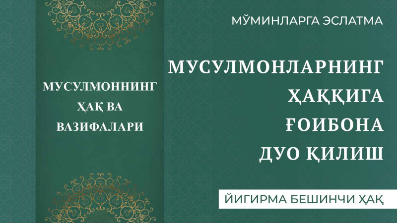 Мусулмонларнинг ҳаққига ғоибона дуо қилиш.Биродар учун ғоибона дуонинг энг қисқа вақтда қабул бўлиши умид қилинади. Биродарrdquo сўзи билан ҳам туғишган акаука, давоми...
