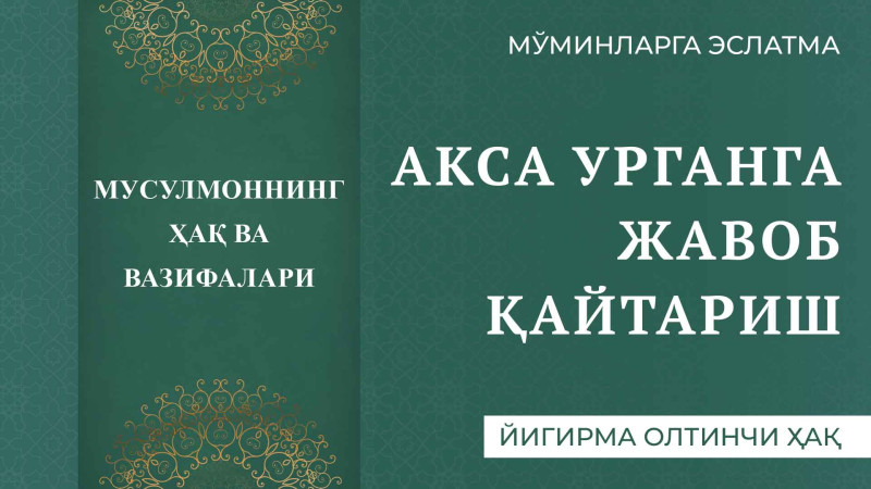 Акса урганга жавоб қайтариш.Бу ҳам мусулмоннинг устидаги ҳаққи бўлиб, акса урган киши алҳамдулиллаҳrdquo деган тақдирда, унга жавобан ярҳамукаллоҳrdquo дейиш билан давоми...