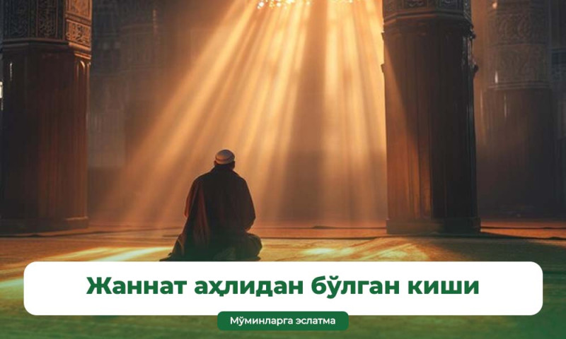 Набий соллаллоҳу алайҳи васаллам саҳобалар билан масжидда ўтирган эдилар. Бир пайт уларга .Ҳозир сизларнинг олдингизга жаннат аҳлидан бўлган бир киши киради, деб давоми...