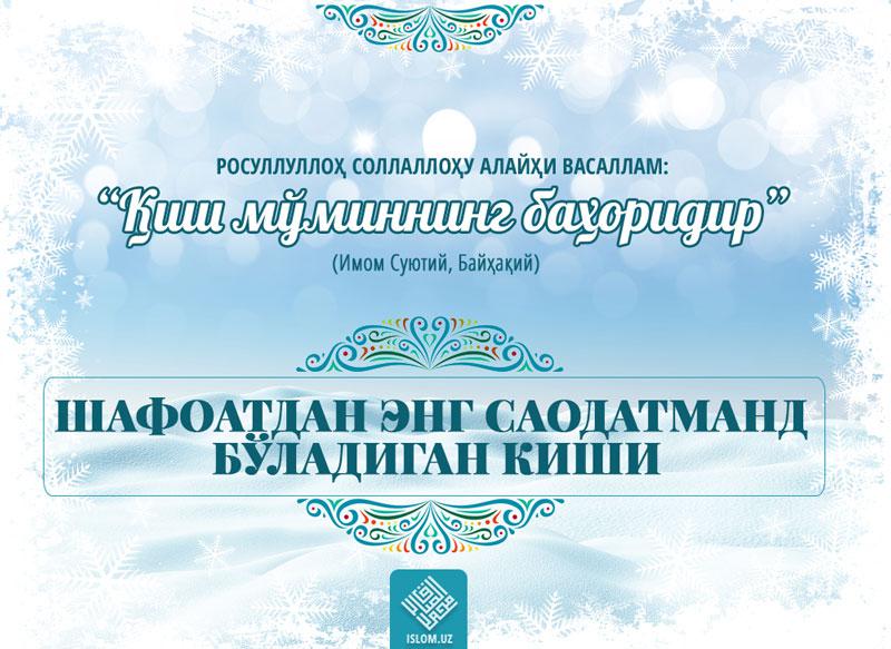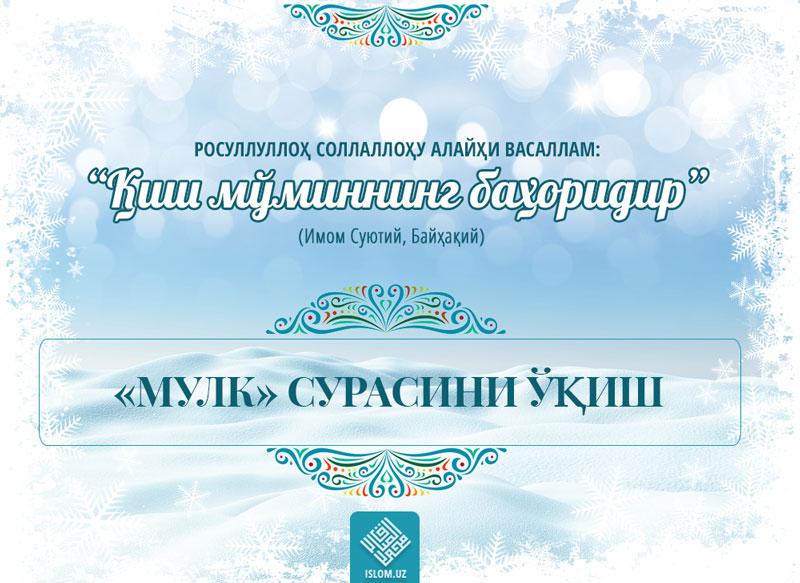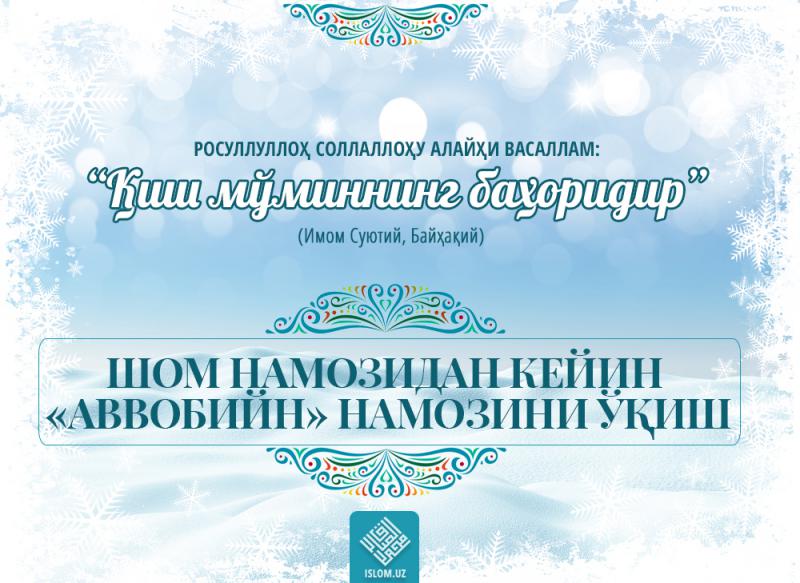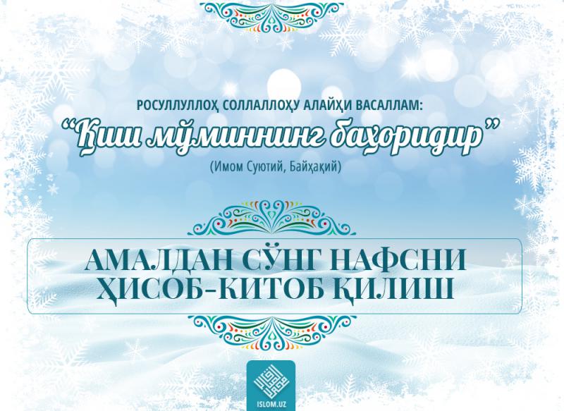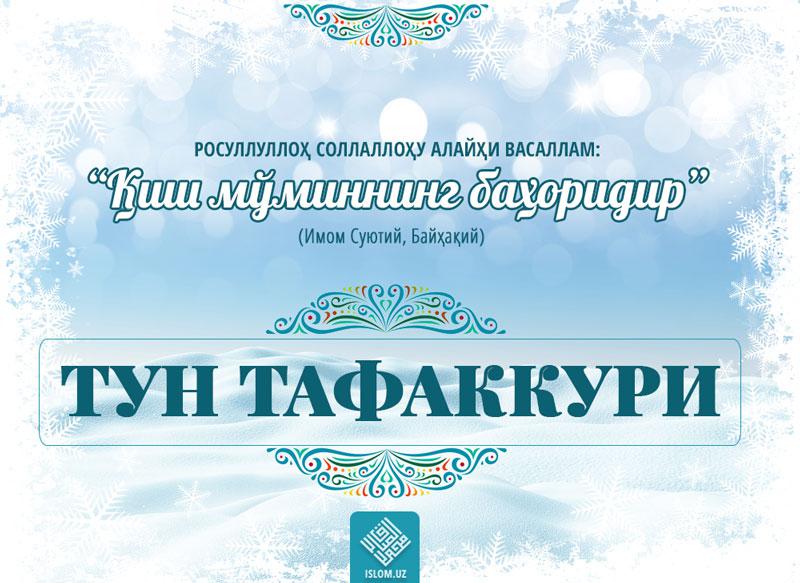 Қиш кунлари бир киприк қоққунча ўтиб кетади. Жуда ҳам қисқалиги сабаб кўп ишларга улгурмай ҳам қоламиз. Аммо шу қисқа фурсатда қанча кўп савоб олиш имкони бўлса, давоми...