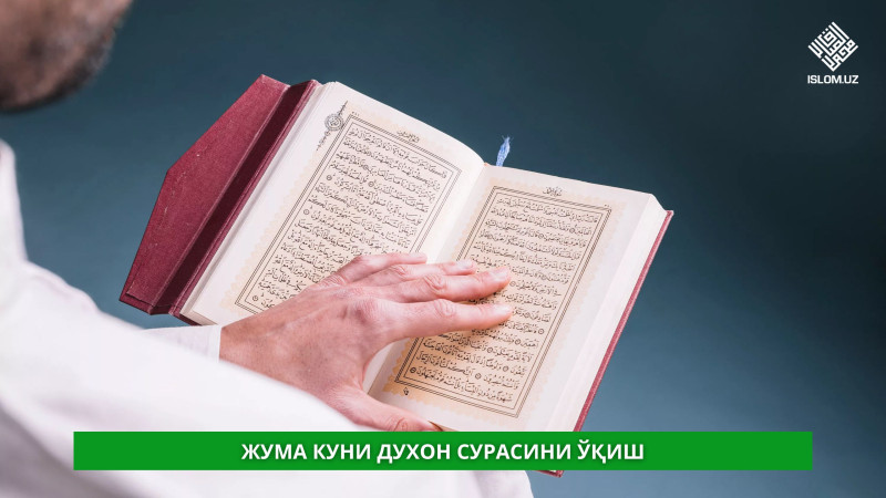 Абу Саъид розияллоҳу анҳудан ривоят қилинади.Набий соллаллоҳу алайҳи васаллам .Ким Қаҳф сурасини жума куни қироат қилса, унга икки жума давоми...