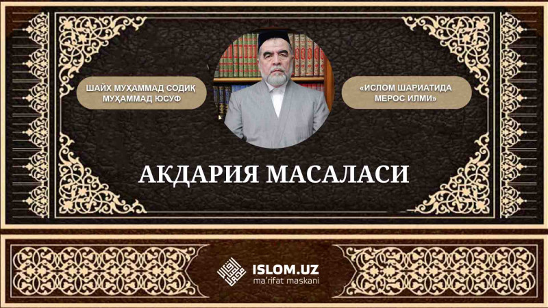 Ушбу масала Бану Акдар қабиласидан бўлган бир аёл билан воқе бўлган. Шунинг учун у .акдария масаласи, деб аталади. Яна баъзилар .Зайд ибн Собит розияллоҳу анҳунинг давоми...