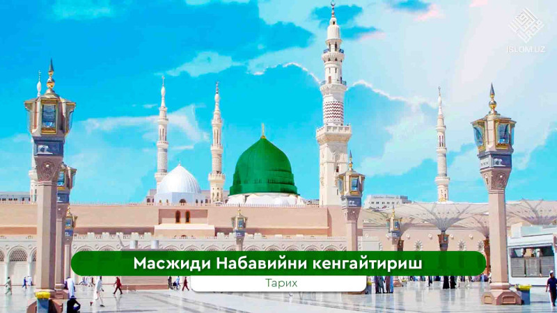 Ҳижрий 17 йилда Умар ибн Хаттоб розияллоҳу анҳу Пайғамбар соллаллоҳу алайҳи васалламнинг масжидларини кенгайтириб ислоҳ қилдилар.Бухорий ва Абу Довуд Ибн Умар давоми...